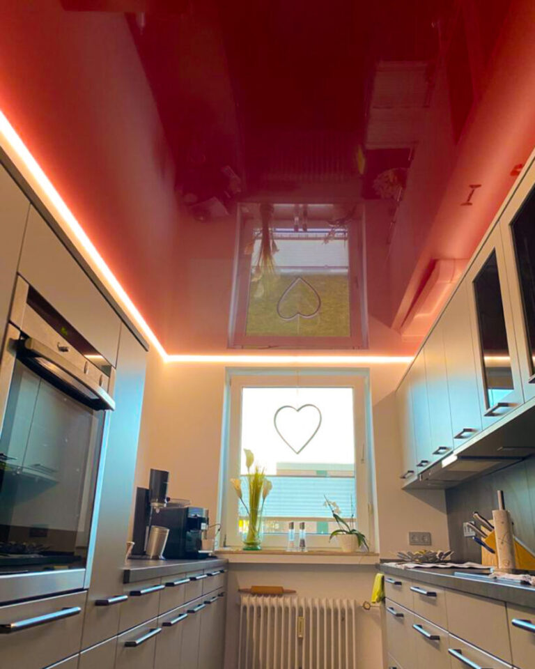 Wenn Farbe den Ton angibt! Diese rote Lackspanndecke bringt Power in die Küche!