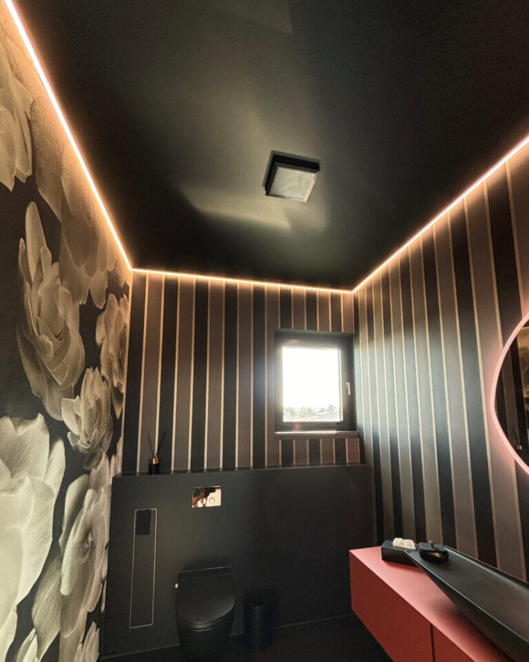 - Spanndecken sind feuchtigkeits- und wärmeresistent – ideal für Feuchträume, wie Bäder und Wellnessbereiche
