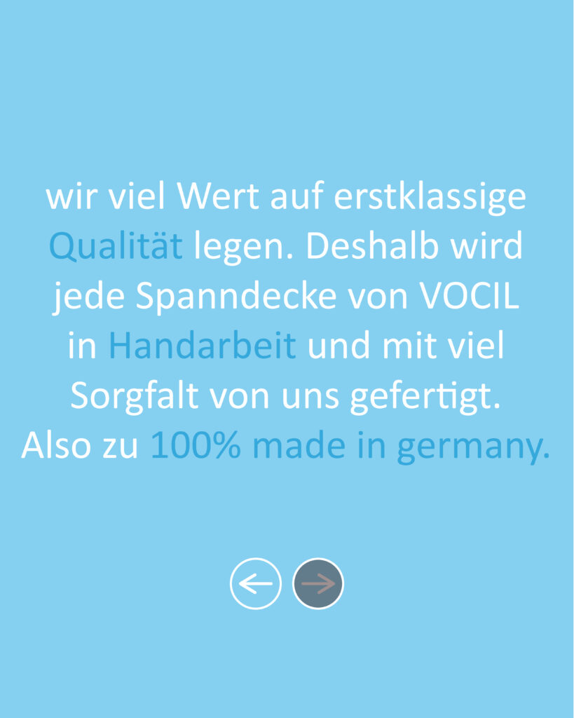 Did you know, that …. 30. January 2026 by VOCIL Fritz … we place great value on quality?That’s why every stretch ceiling from VOCIL is handmade and produced with much carefulness100% made in Germany