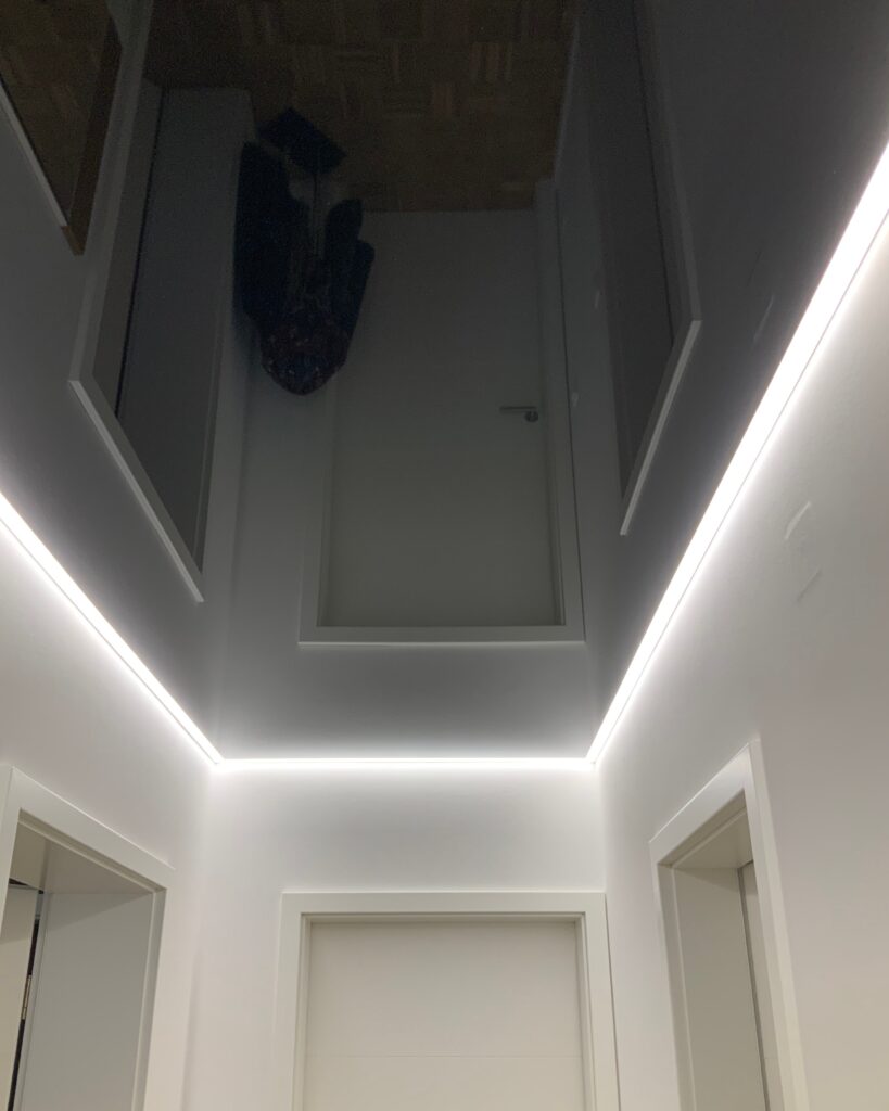 Dank der integrierten Beleuchtung entsteht eine angenehme Lichtstimmung, die Ihre Spanndecken stilvoll in Szene setzt. Ob als dezente Raumabtrennung oder modernes Designelement – unser LED Profil verbindet Funktionalität mit Ästhetik und verleiht jedem Raum eine exklusive Note.
